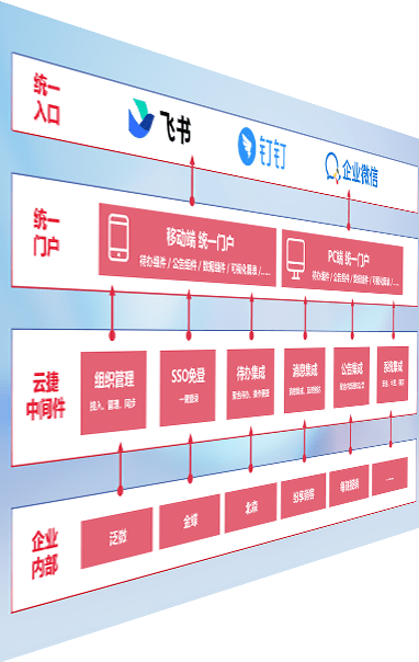 对协作平台提供支持服务,,支持企业应用与协作平台对接,,包含组织同步、、、、消息集成、、、、待办集成等。。支持目前主流的协作平台:钉钉、、、企微和飞书。。。。